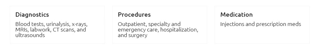 - Scan exclusions: hips, knees, dental illness, exam fees.